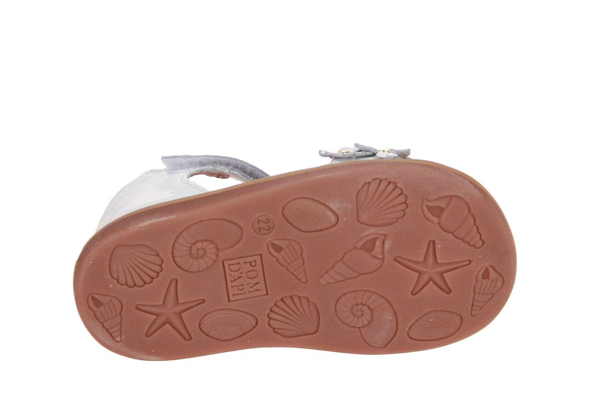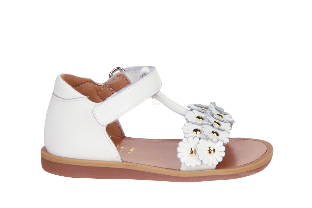 Deze wit lederen meisjessandaal is van het merk Pom d'Api.