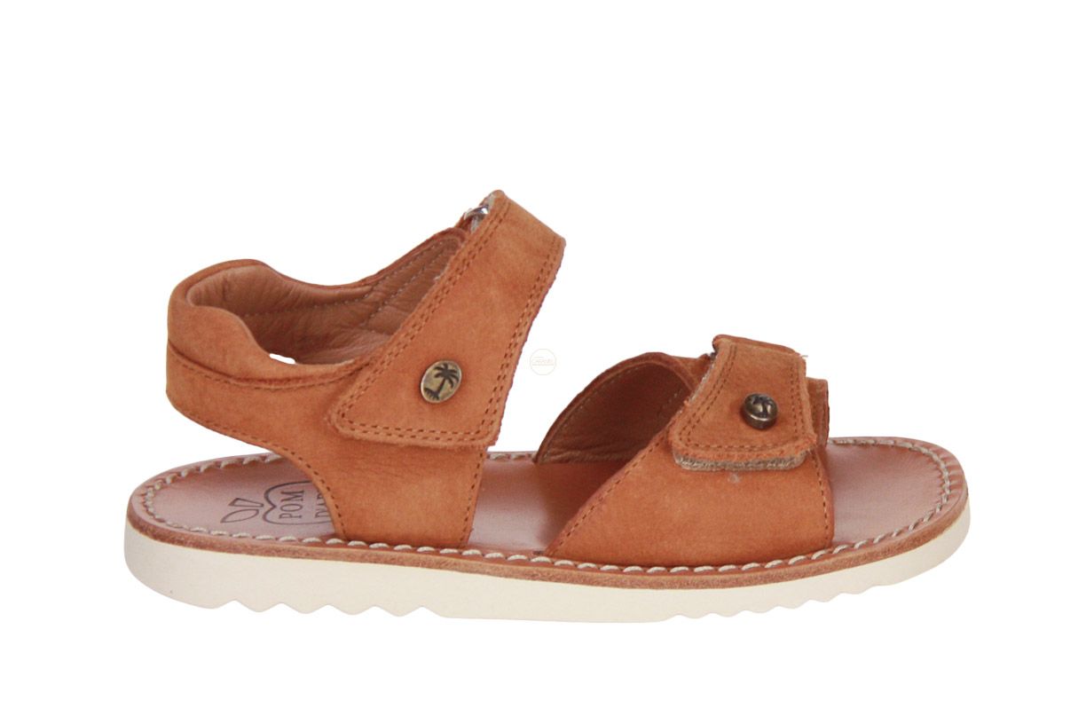 Deze camel nubuck jongenssandaal is van het merk Pom d'Api.