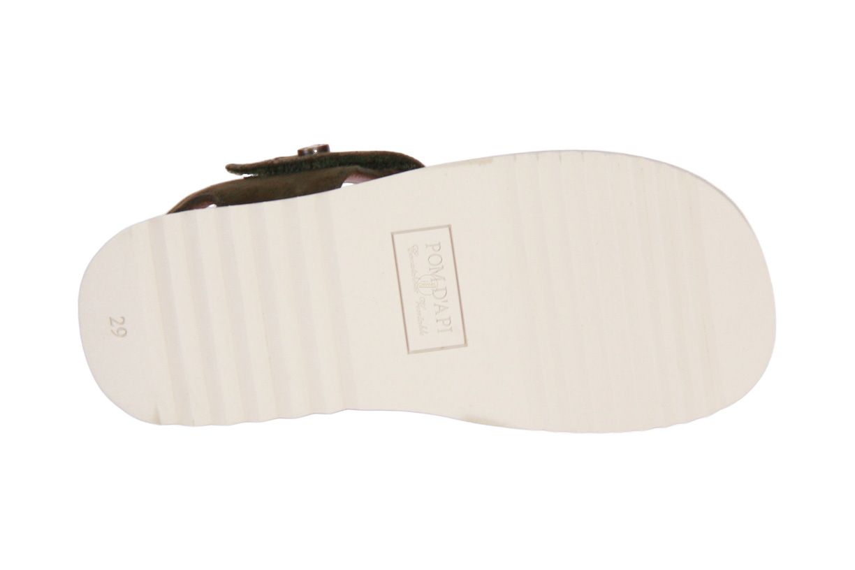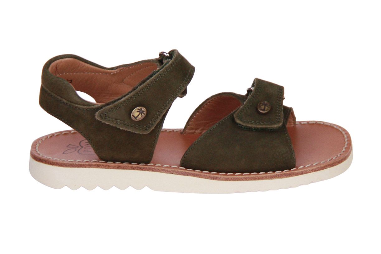 Deze kaki nubuck jongenssandaal is van het Franse merk Pom d'Api.