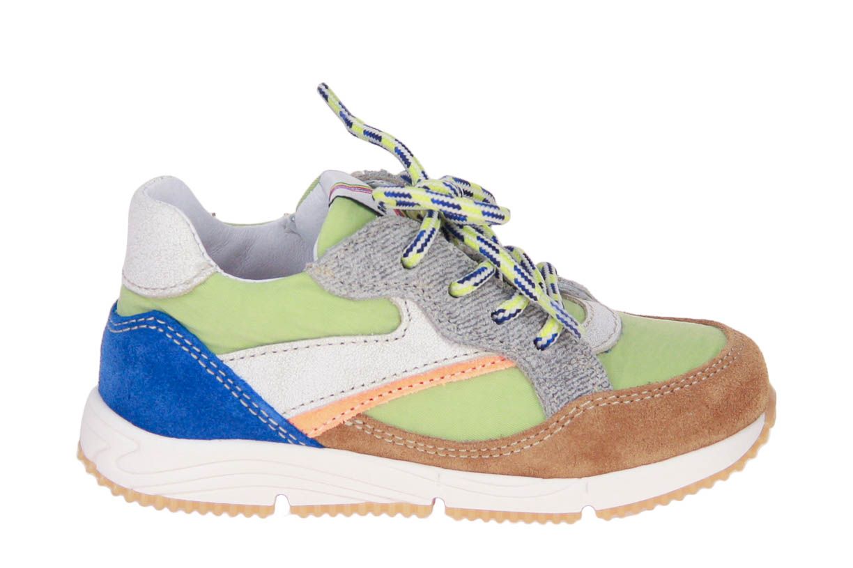 Deze groen textielen jongensschoen is van het merk Romagnoli. De binnenzool is uitneembaar, ideaal voor steunzolen.