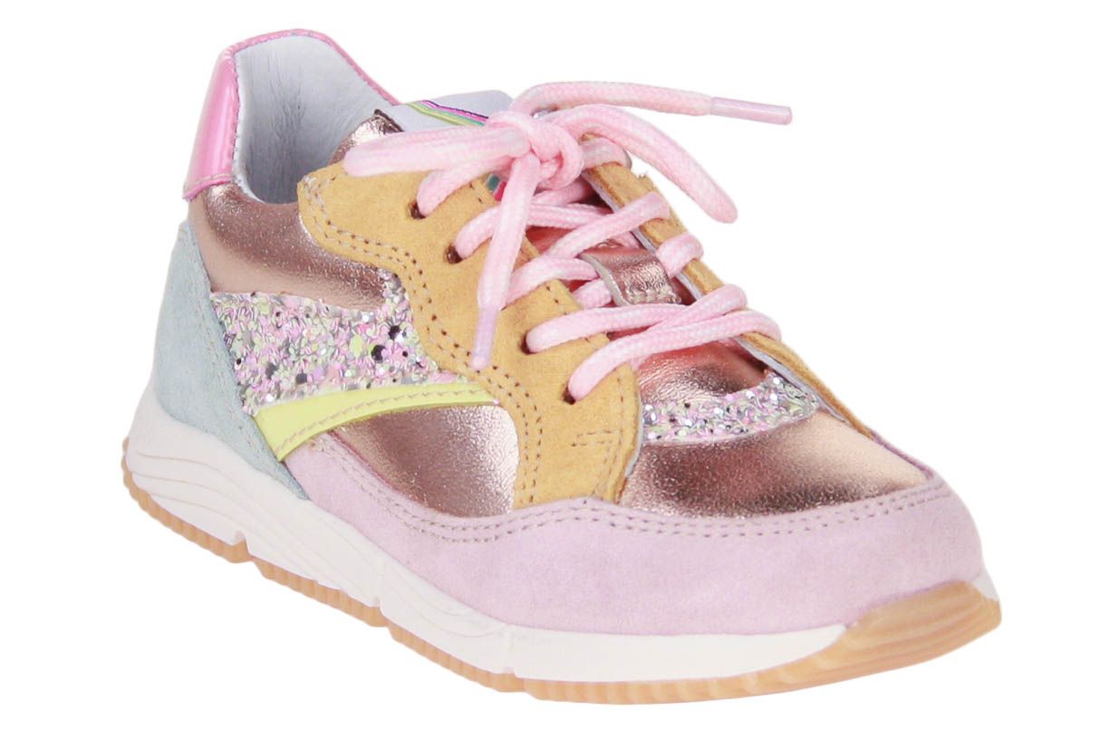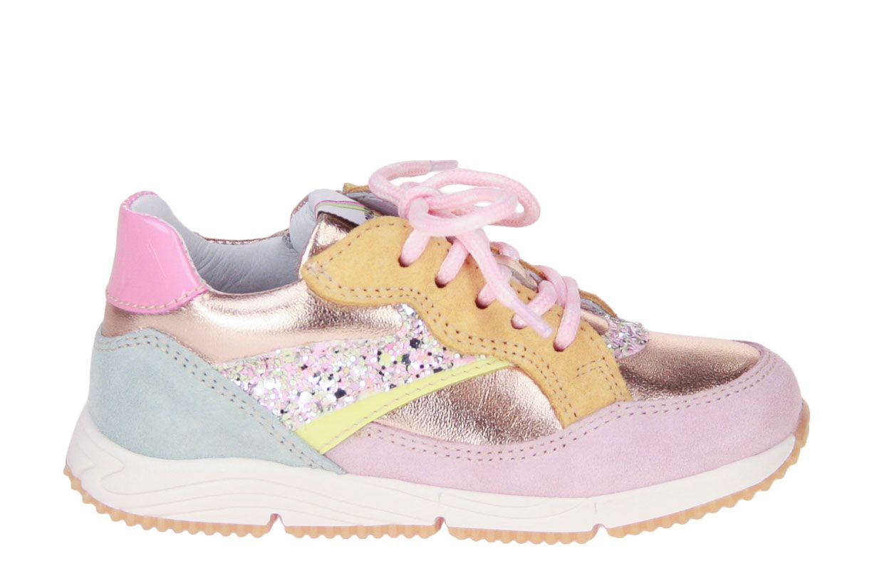 Deze roze suède meisjesschoen is van het Italiaanse merk Romagnoli. Het schoentje is afgewerkt met verschillende kleur accenten. De binnenzool is uitneembaar, ideaal voor steunzolen.