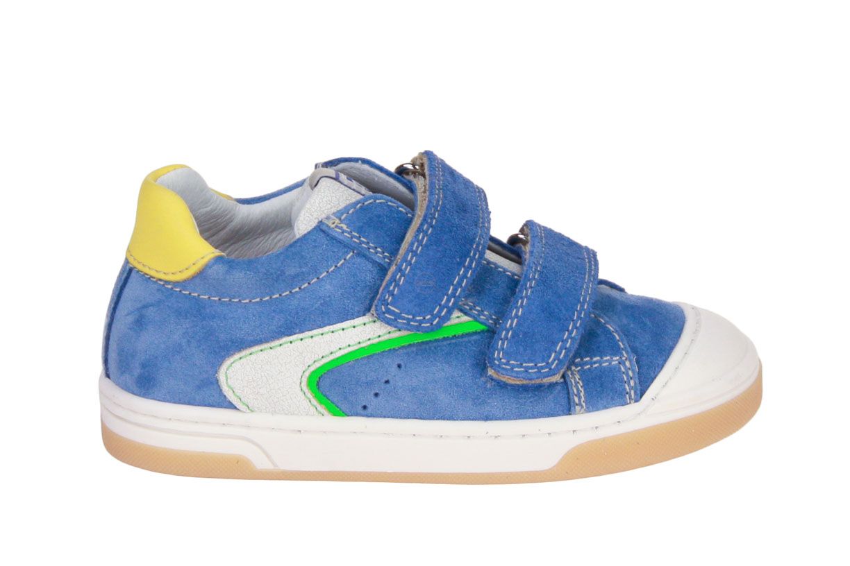 Deze blauw suède jongensschoen is van het merk Romagnoli.