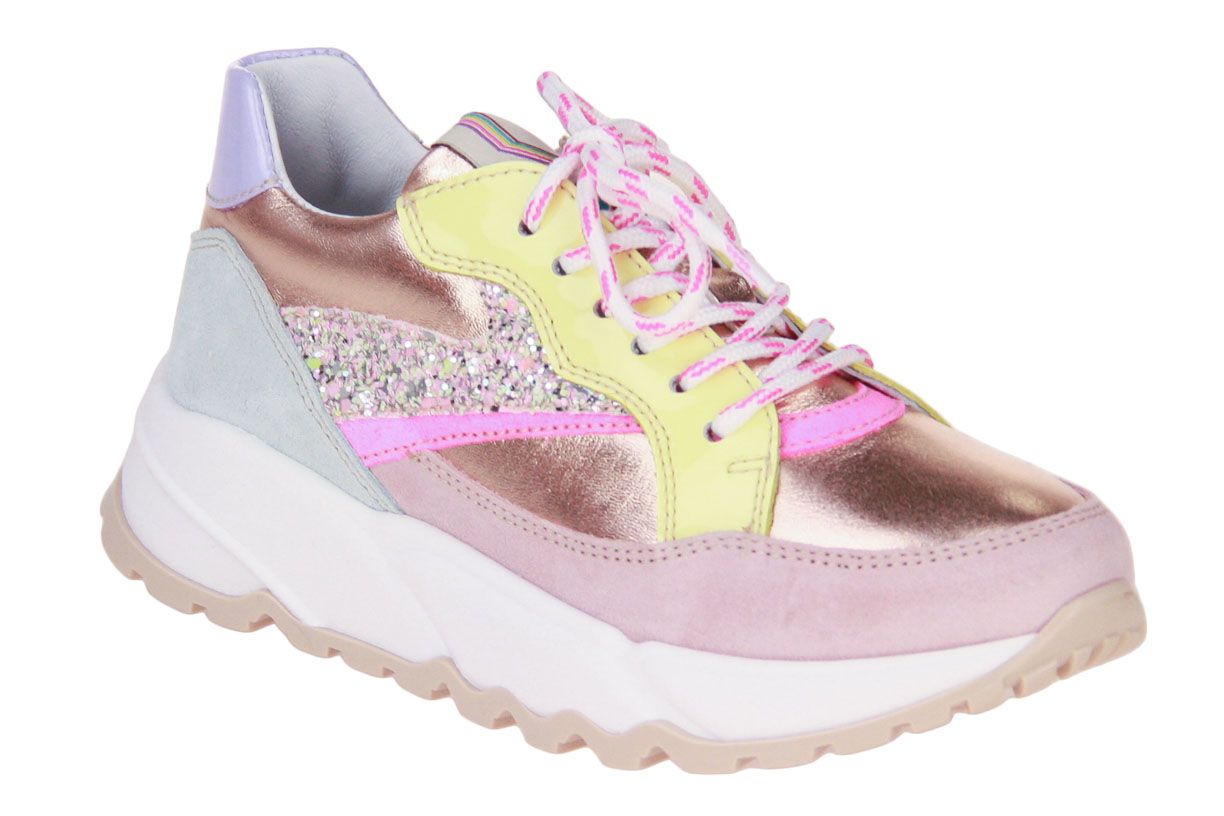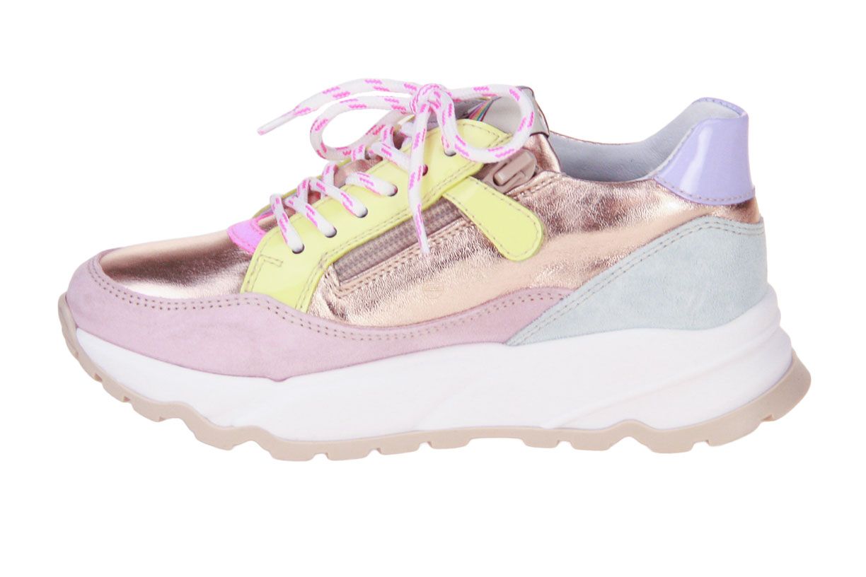 Deze roze metallic lederen meisjesschoen is van het merk Romagnoli. De schoen is afgewerkt met verschillende kleur accenten. De binnenzool is uitneembaar, ideaal voor steunzolen.