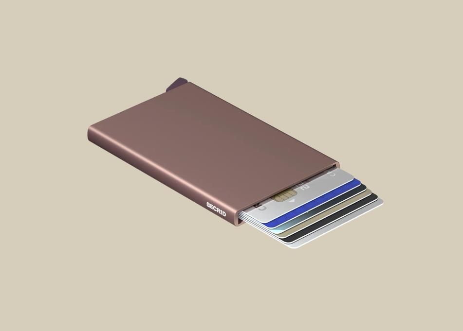 De Cardprotector is het hart van de collectie en onze meest minimalistische wallet. Het gepatenteerde mechanisme geeft met één simpele beweging toegang tot je kaarten: klaar voor gebruik. De aluminium behuizing beschermt de kaarten tegen buigen, breken en ongewenste draadloze communicatie. - 4 verdikte of 6 platte kaarten
