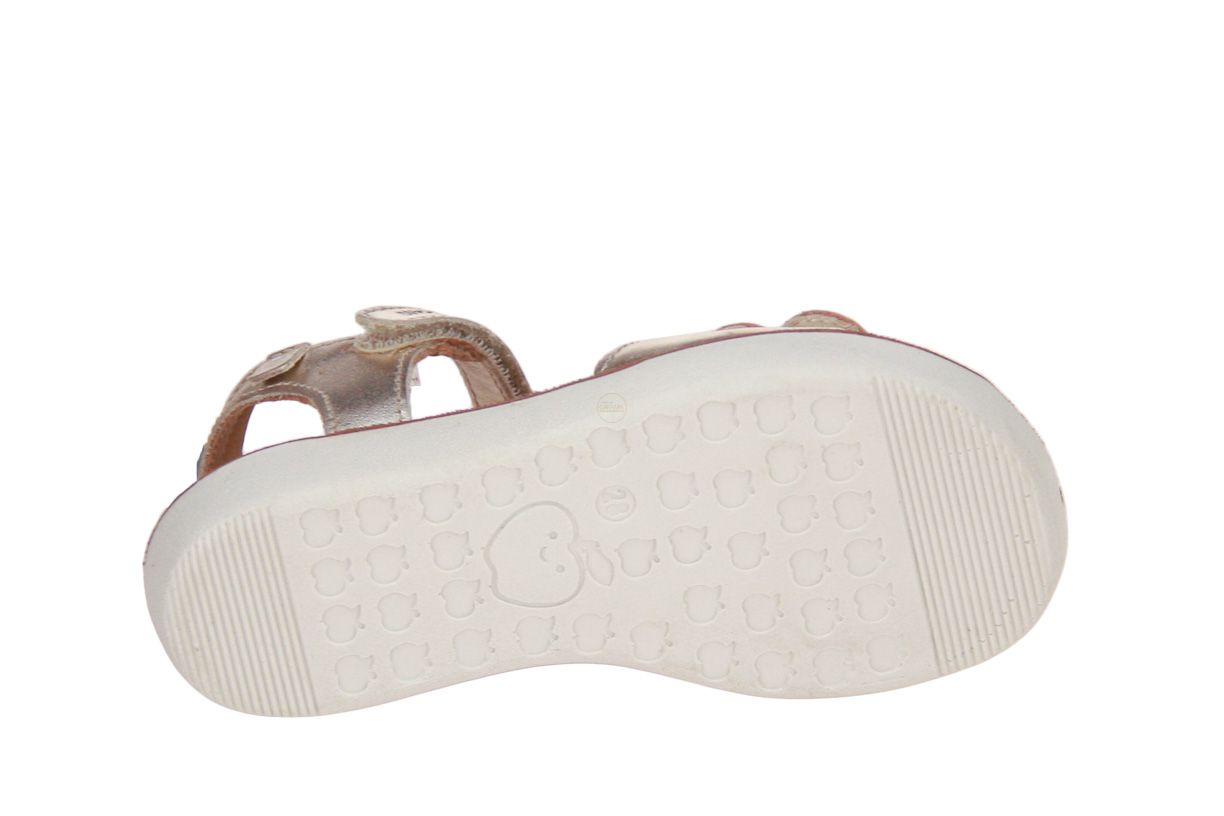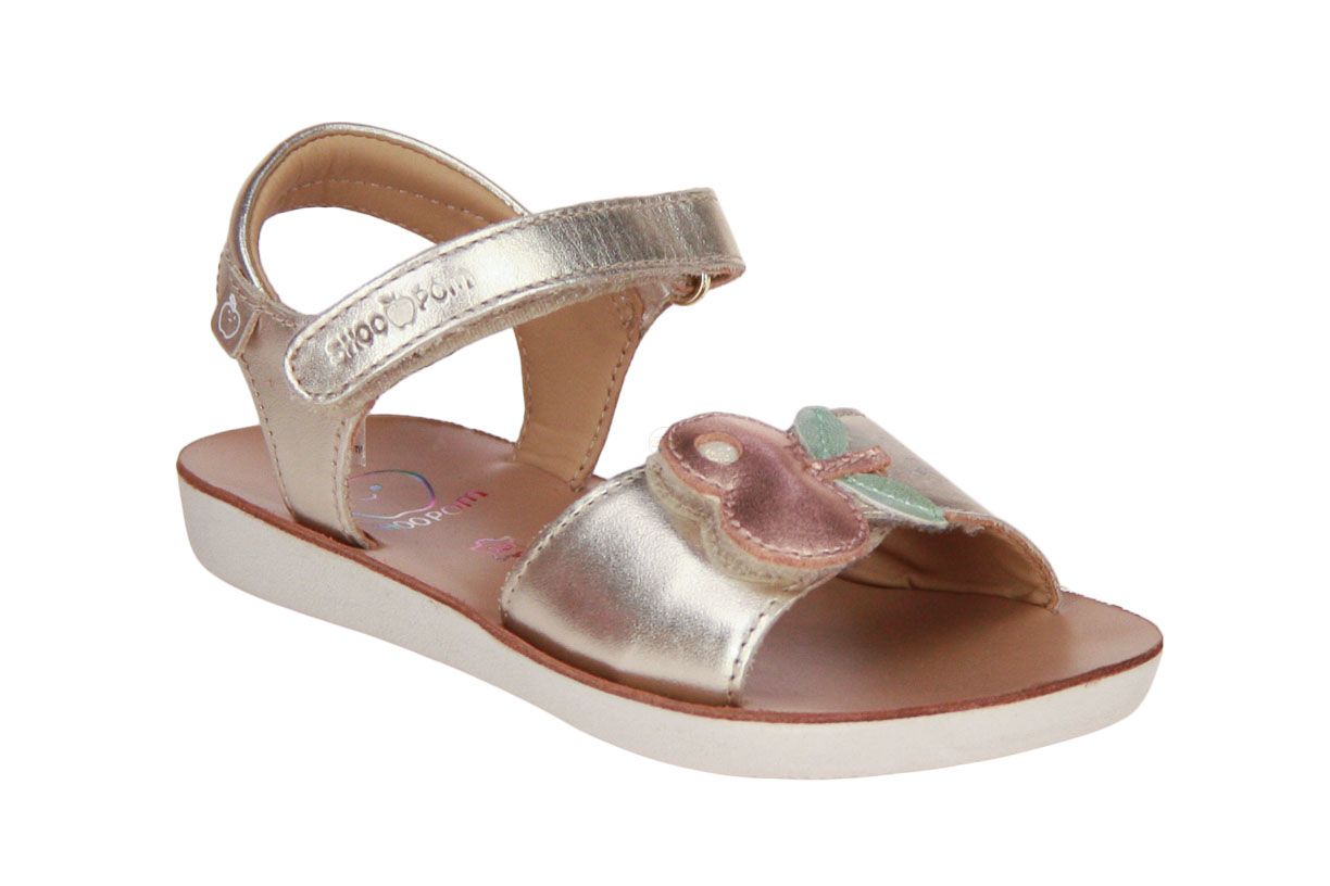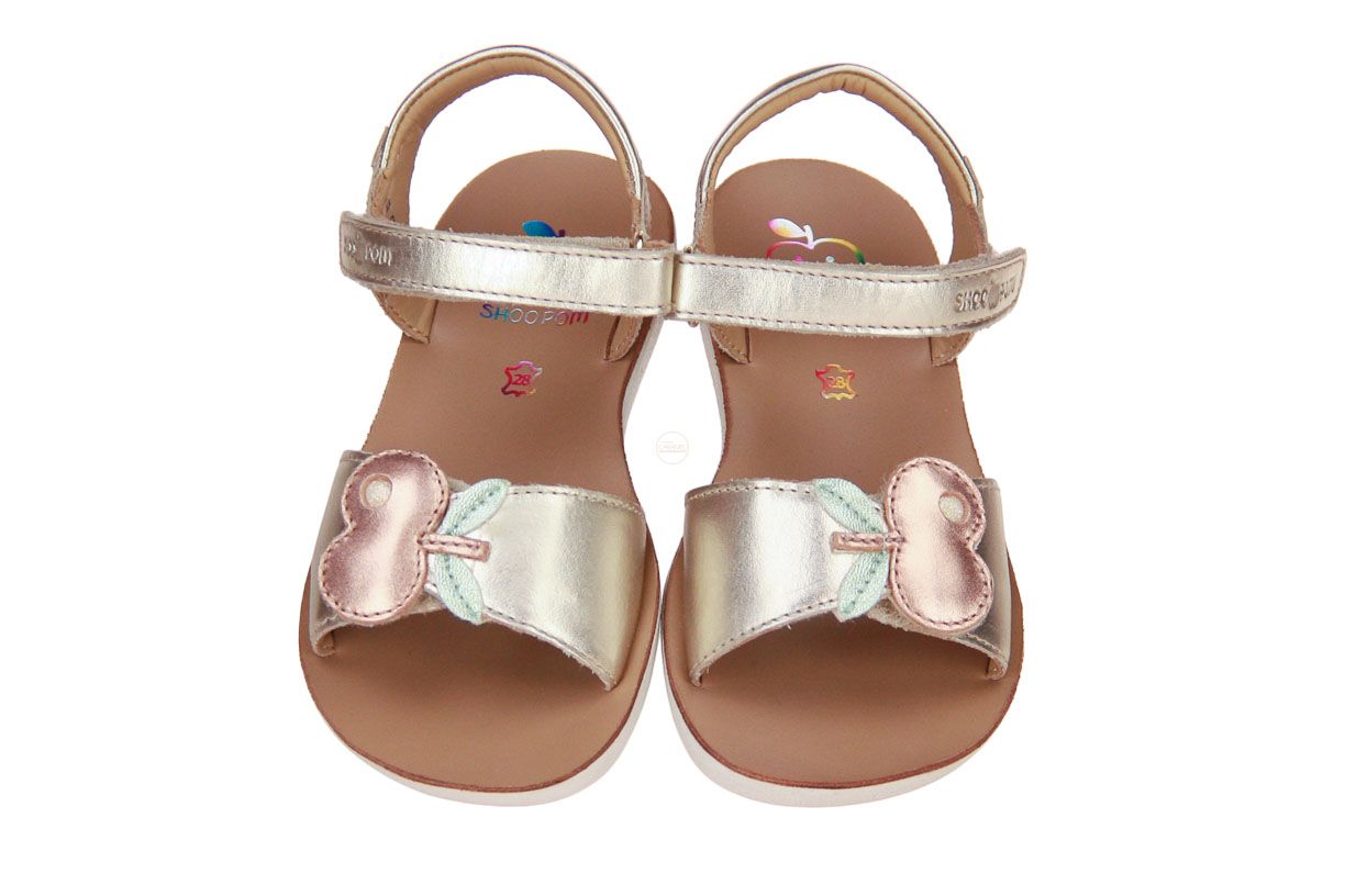 Deze goud lederen meisjessandaal is van het merk Shoo Pom.