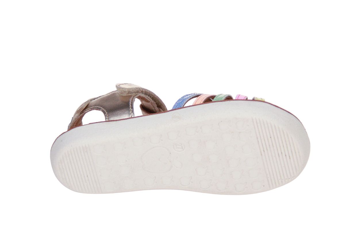 Deze goud lederen meisjessandaal is van het merk Shoo Pom.