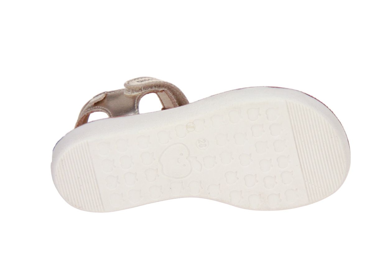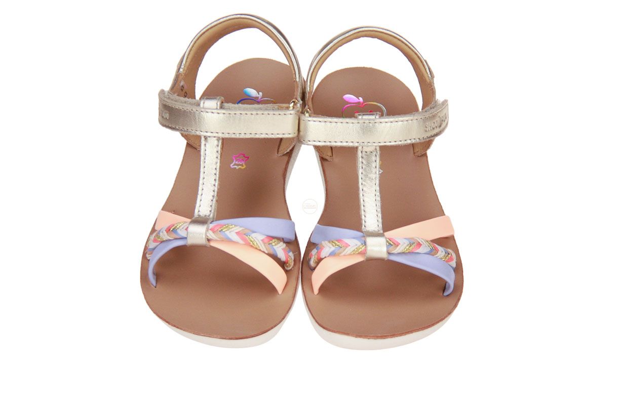 Deze goud lederen meisjessandaal is van het merk Shoopom.