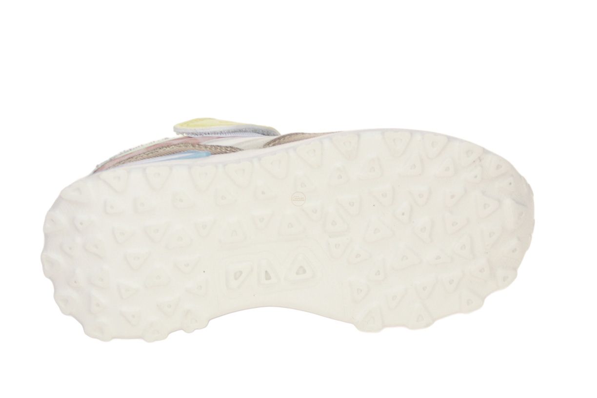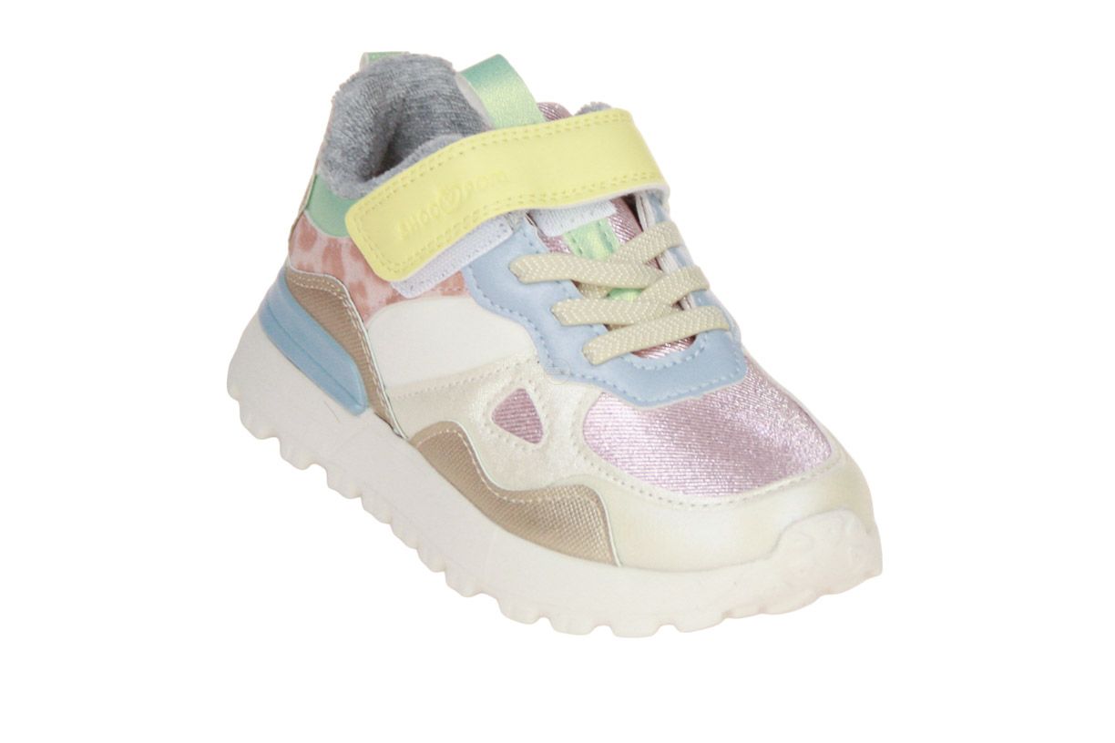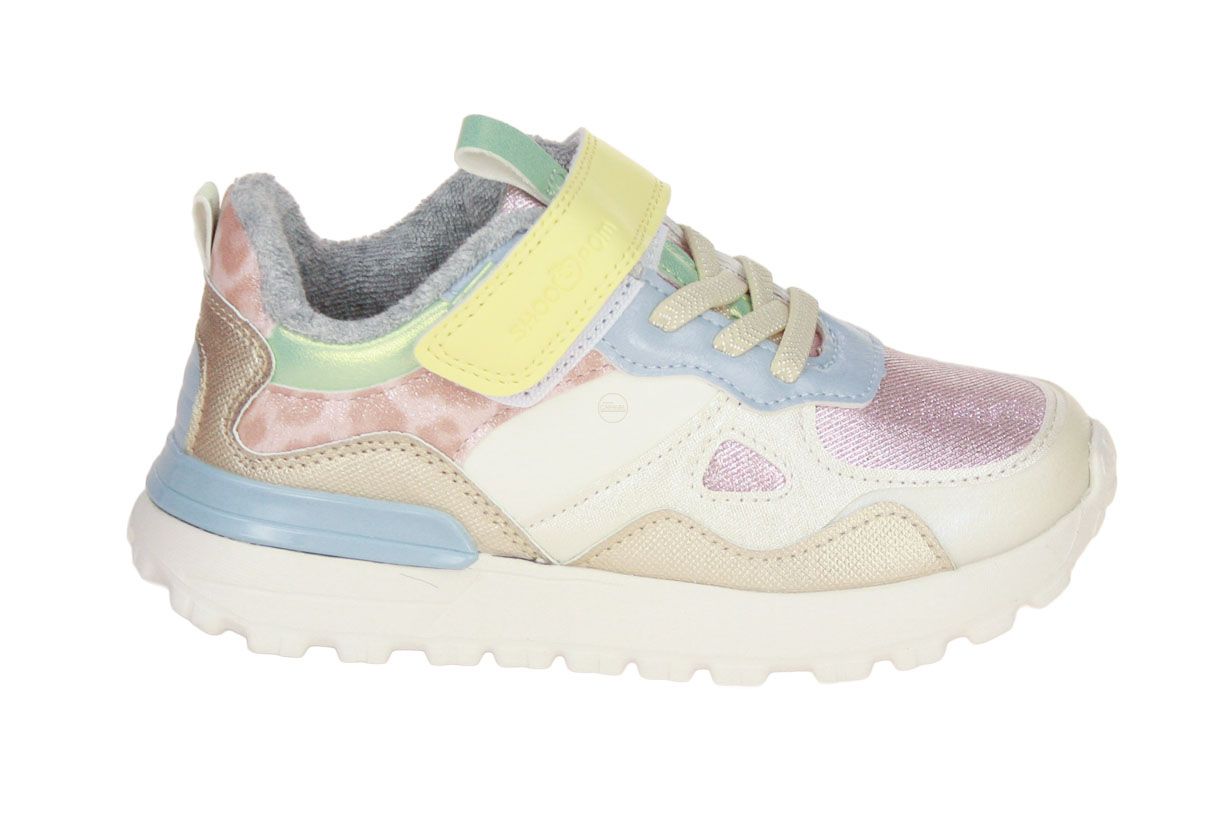 Deze multikleurige lederen meisjesschoen is van het merk Shoo Pom.