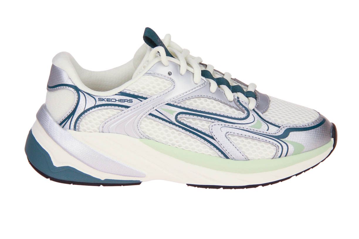 Deze textielen schoen is van het merk Skechers. De schoen is wasmachine bestendig.
