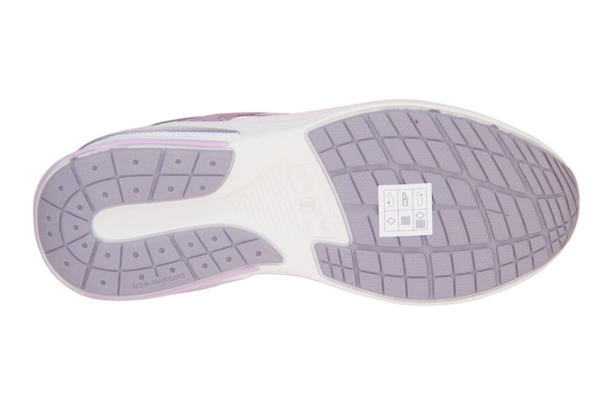 Deze offwhite textielen schoen is van het merk Skechers. De schoen is wasmachine bestendig.