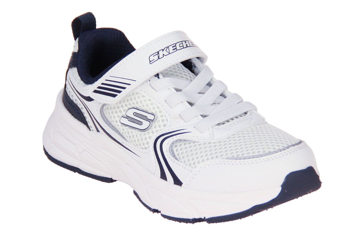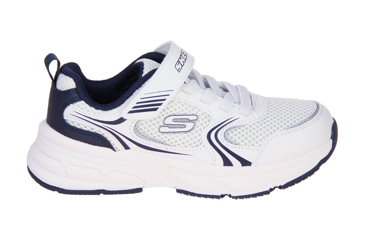 Deze wit textielen jongensschoen is van het merk Skechers.