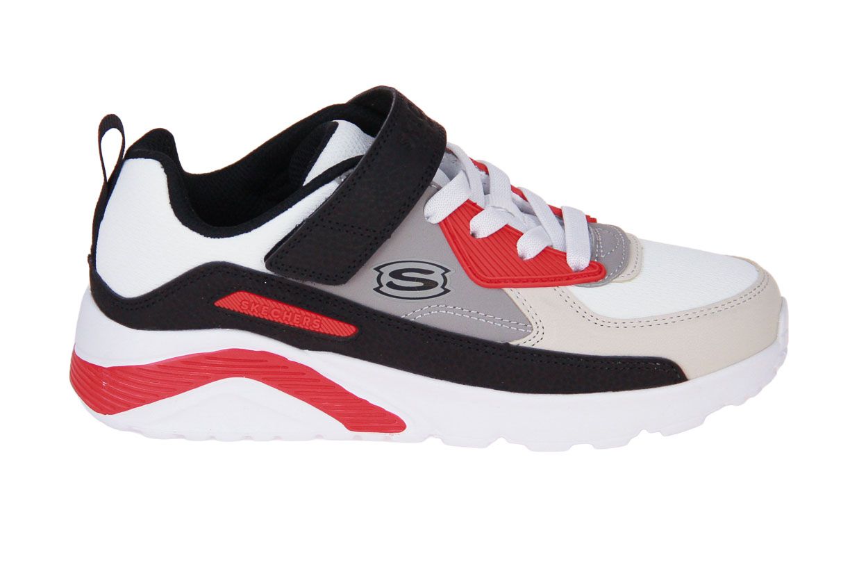 Deze wit textielen jongensschoen is van het merk Skechers.
