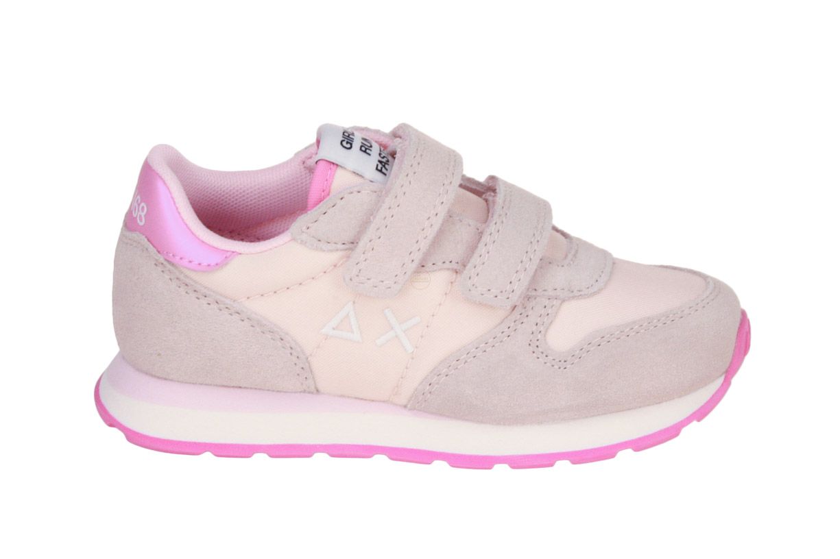 Deze roze suède meisjessschoen is van het merk SUN68.