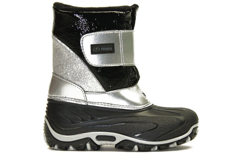 Tecnica zwarte sneeuwlaars Tender Lux" "Stoere zwarte laars voor jongens en meisjes om de koudste winterdagen te trotseren. Met rubberen zool en schoen, en warme Gore-Tex binnenvoering die ademt. De brede velcrostrip maakt aan- en uitdoen eenvoudig, zelfs met handschoenen aan.