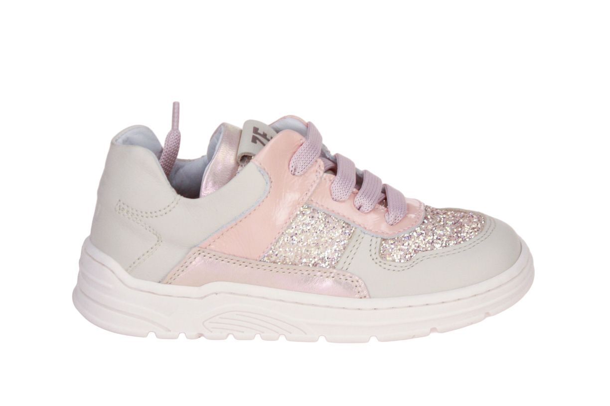 Deze beige lederen meisjesschoen met roze accenten is van het merk Zecchino d'Oro.