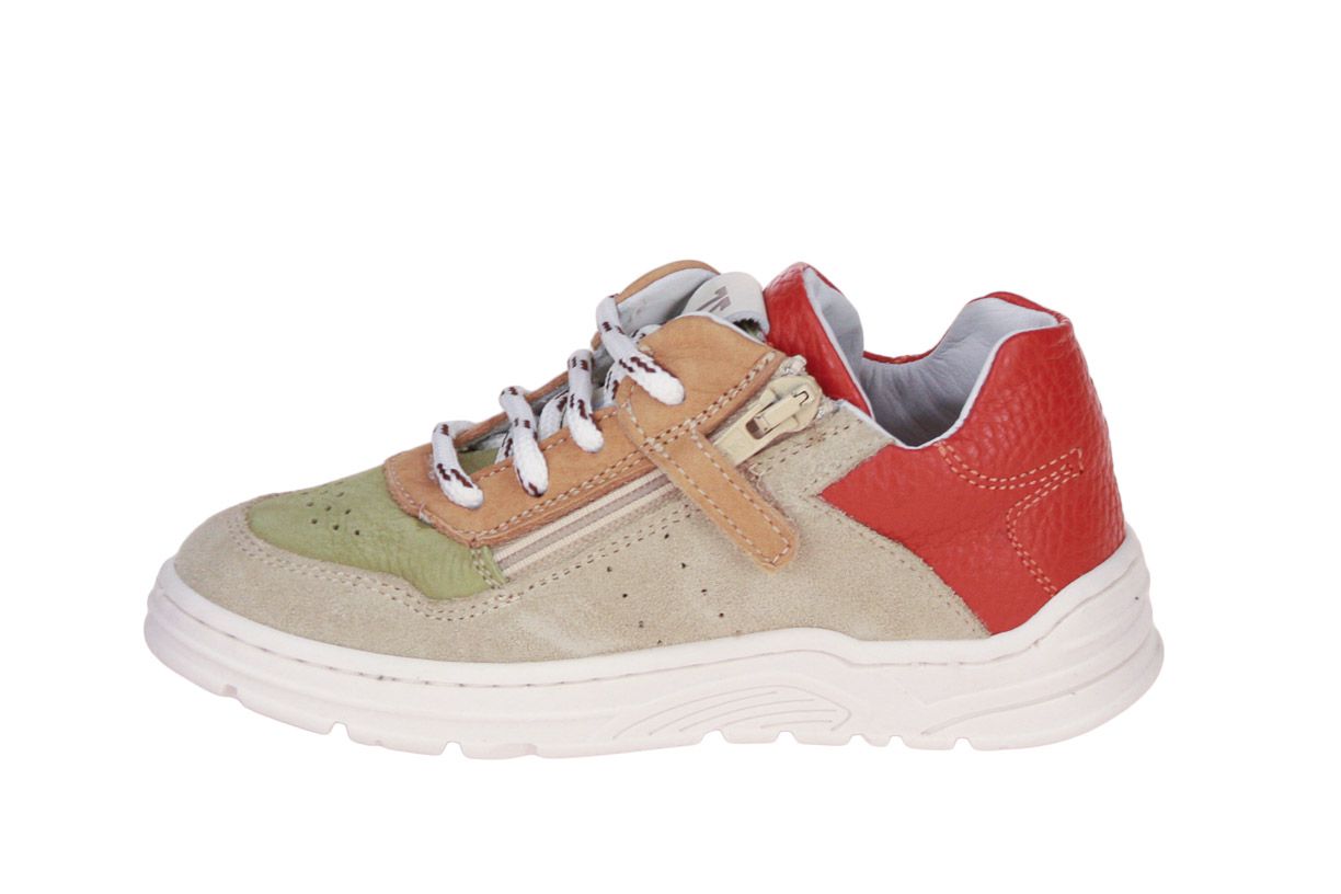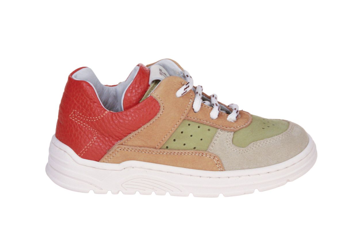 Deze camel nubuck jongensschoen met groene accenten is van het merk Zecchino d'Oro.
