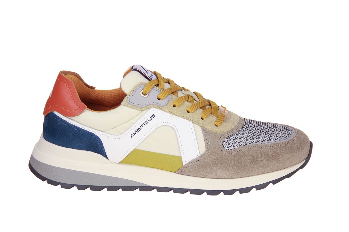 Deze beige textielen herenschoen is van het merk Ambitious. De binnenzool is uitneembaar, ideaal voor steunzolen.
