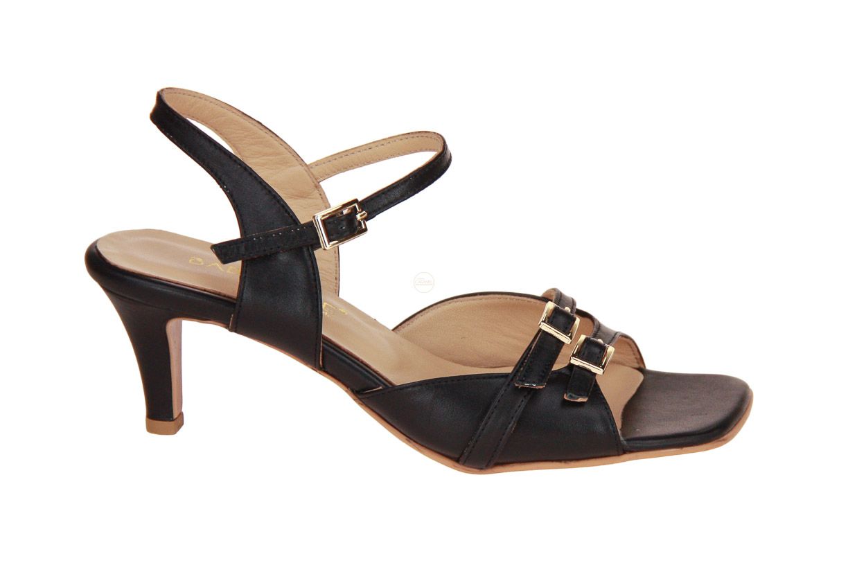 Deze zwart lederen damessandaal is van het merk Babouche.