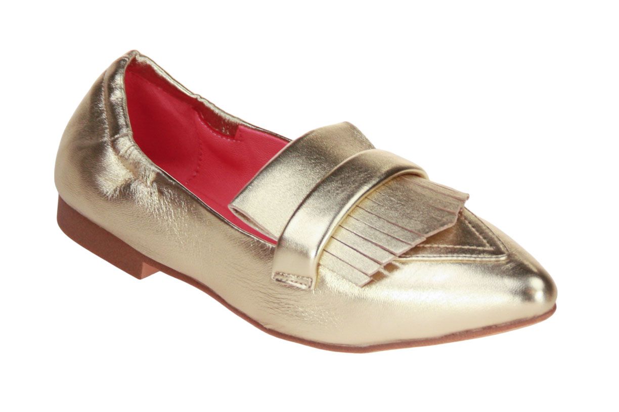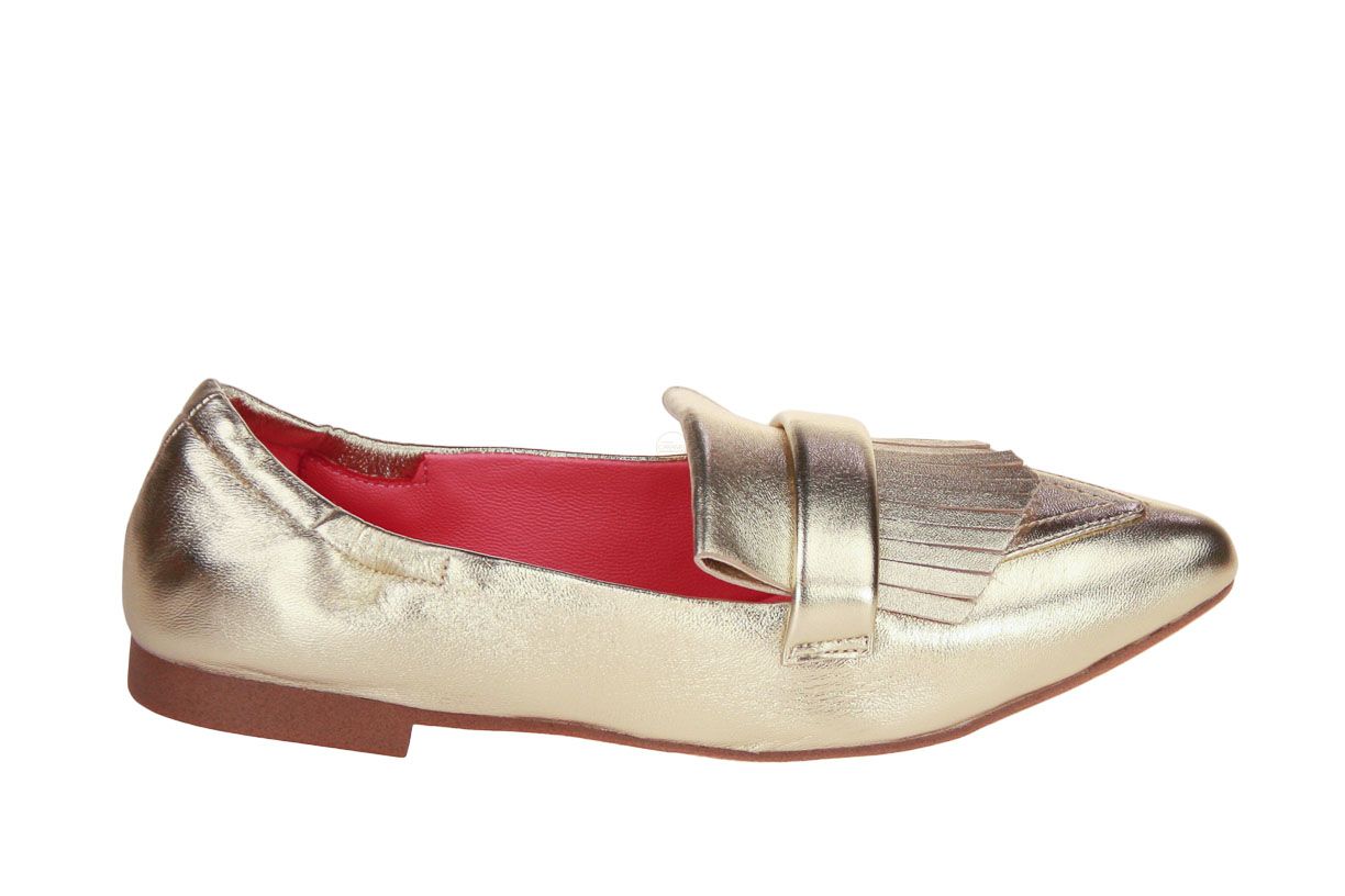 Deze goud lederen damesschoen is van het merk Blackrose.