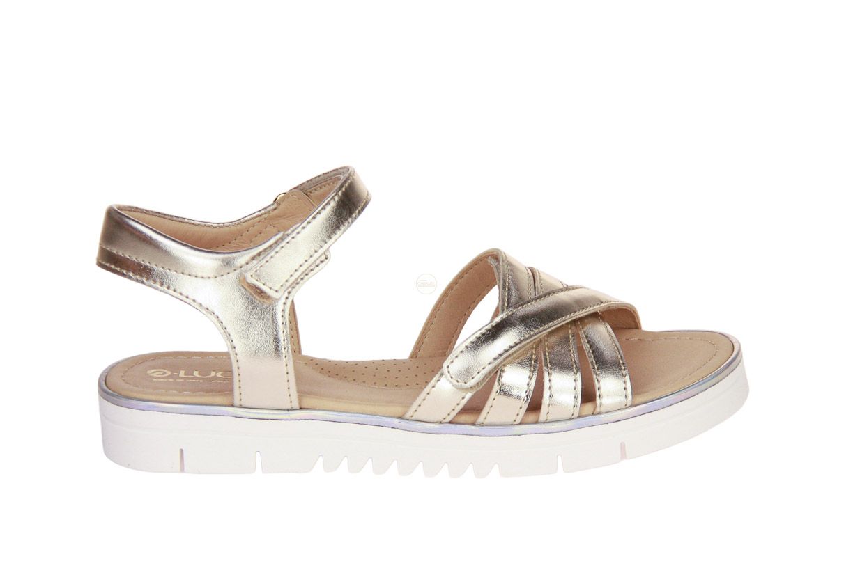Deze goud lederen meisjessandaal is van het merk Luca.