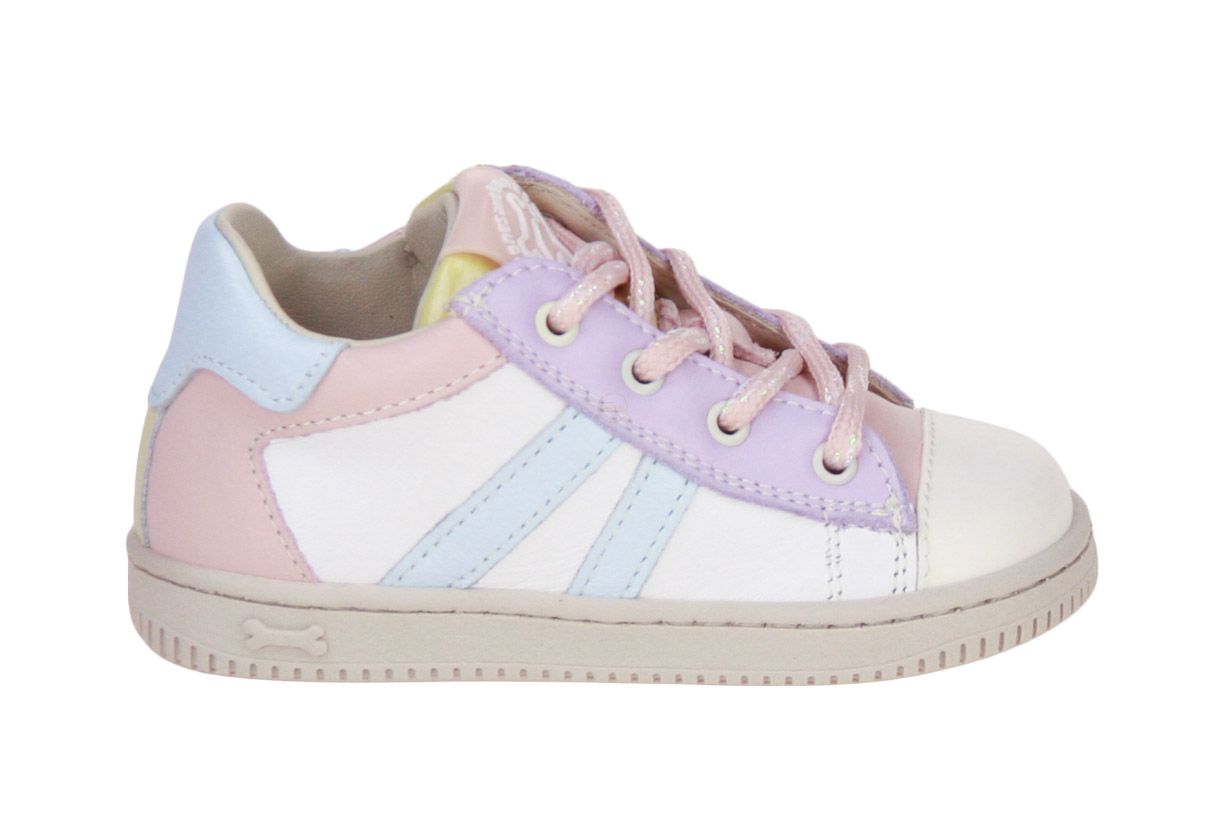 Deze wit lederen meisjesschoen is van het merk Stones and Bones.