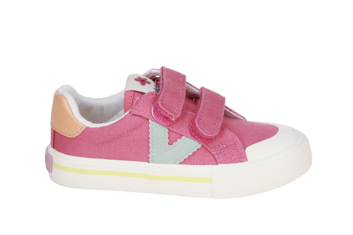 Deze roze textielen sneaker is van het merk Victoria.