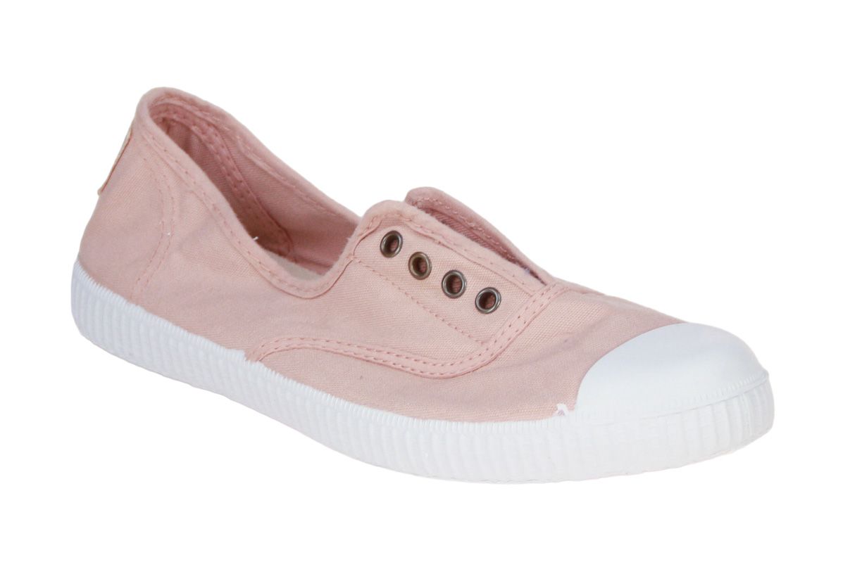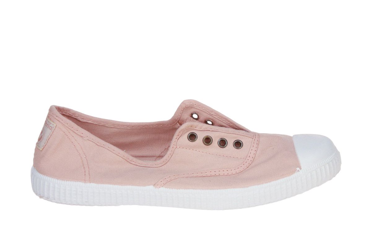 Deze roze textielen meisjesschoen is van het merk Victoria.